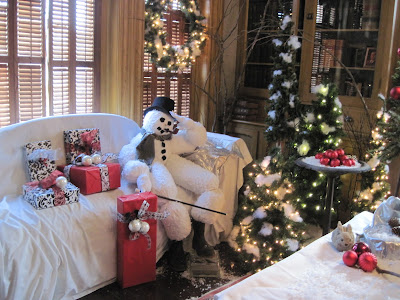 This is the dining room. It is not as large as the one at the Bingham, but is beautiful. The silver tree is in front of the pass through from the butler's pantry, where food would be handed in from the kitchen.