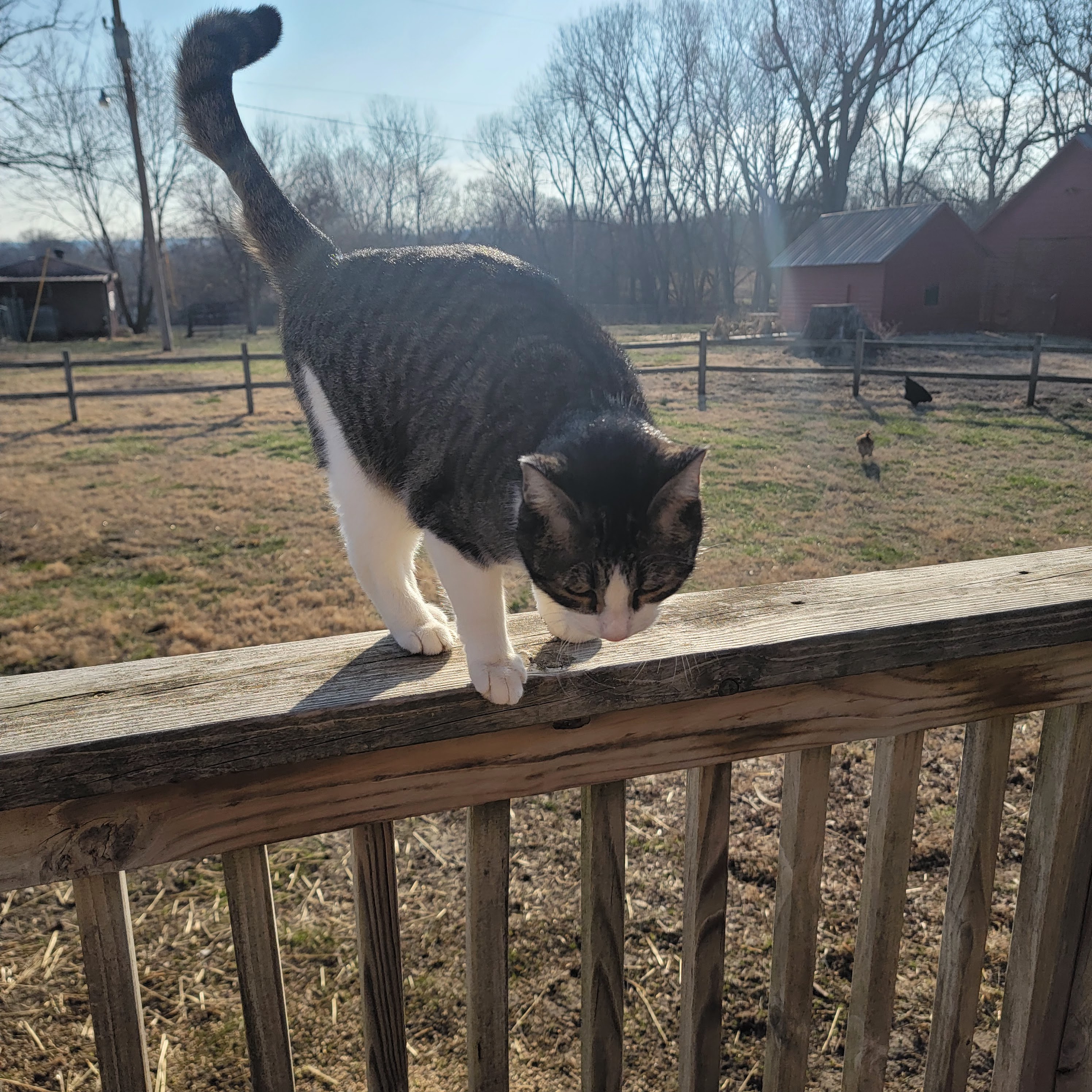 They are in the old hen house with Singleton, the rooster and four other hens.